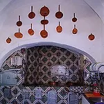 Olika slags mat till frukost, såsom yoghurt, frukt och ost. Ljuvlig byggnad, stiliga och vackert inredda rum. Tyst och idealiskt läge precis bredvid Paradis-klostret.